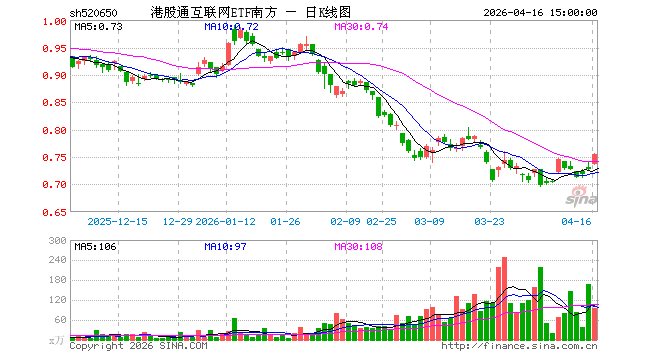 4月16日,港股通互联网ETF南方(520650)涨3.71%,成交额7126.31万元。当日份额增加3000.00万份,最新份额为11.21亿份,近20个交易日份额增加6.29亿份。最新资产净值计算值为8.51亿元。